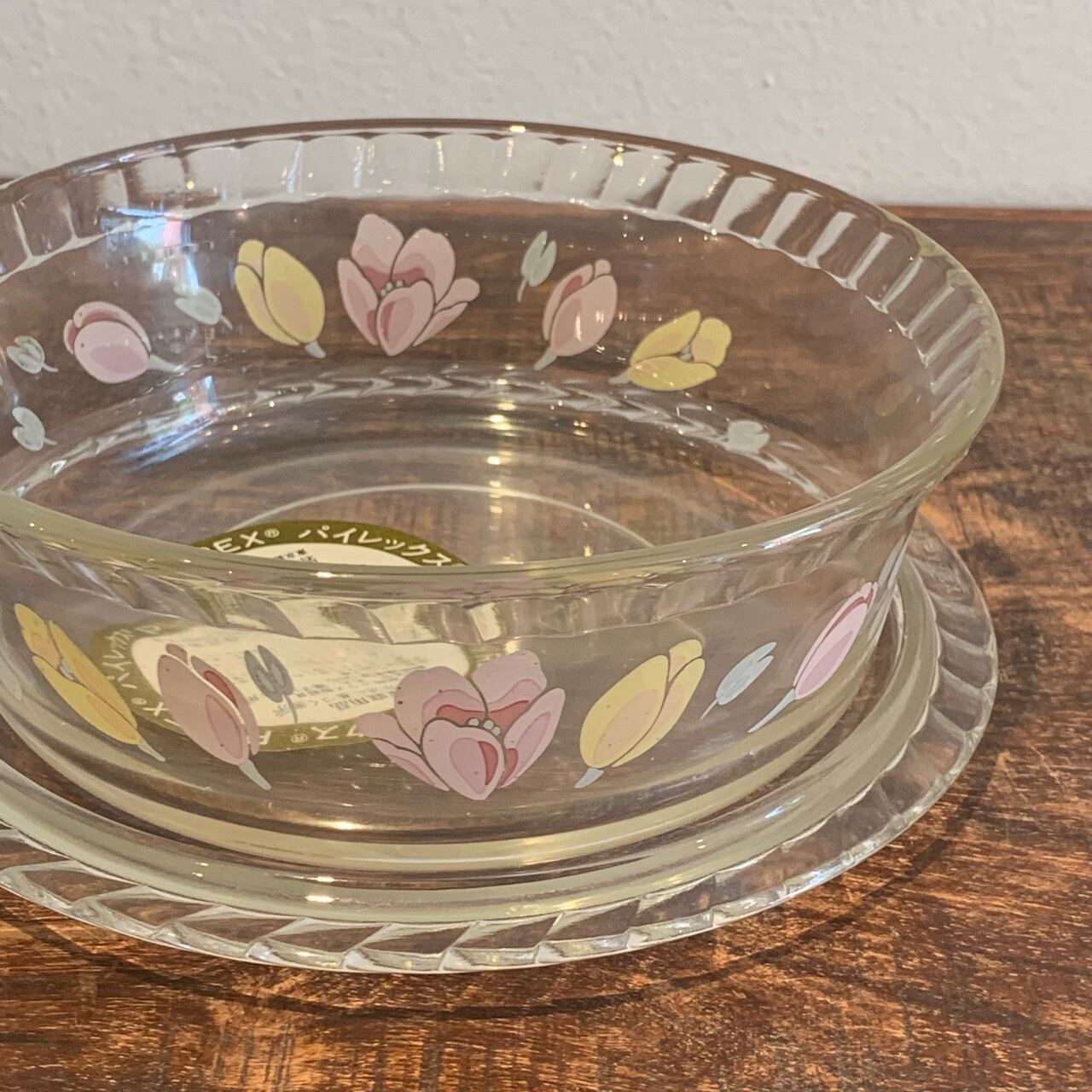 PYREX パイレックス ビンテージ チューリップ柄 蓋付きボウル 昭和レトロ ビンテージ