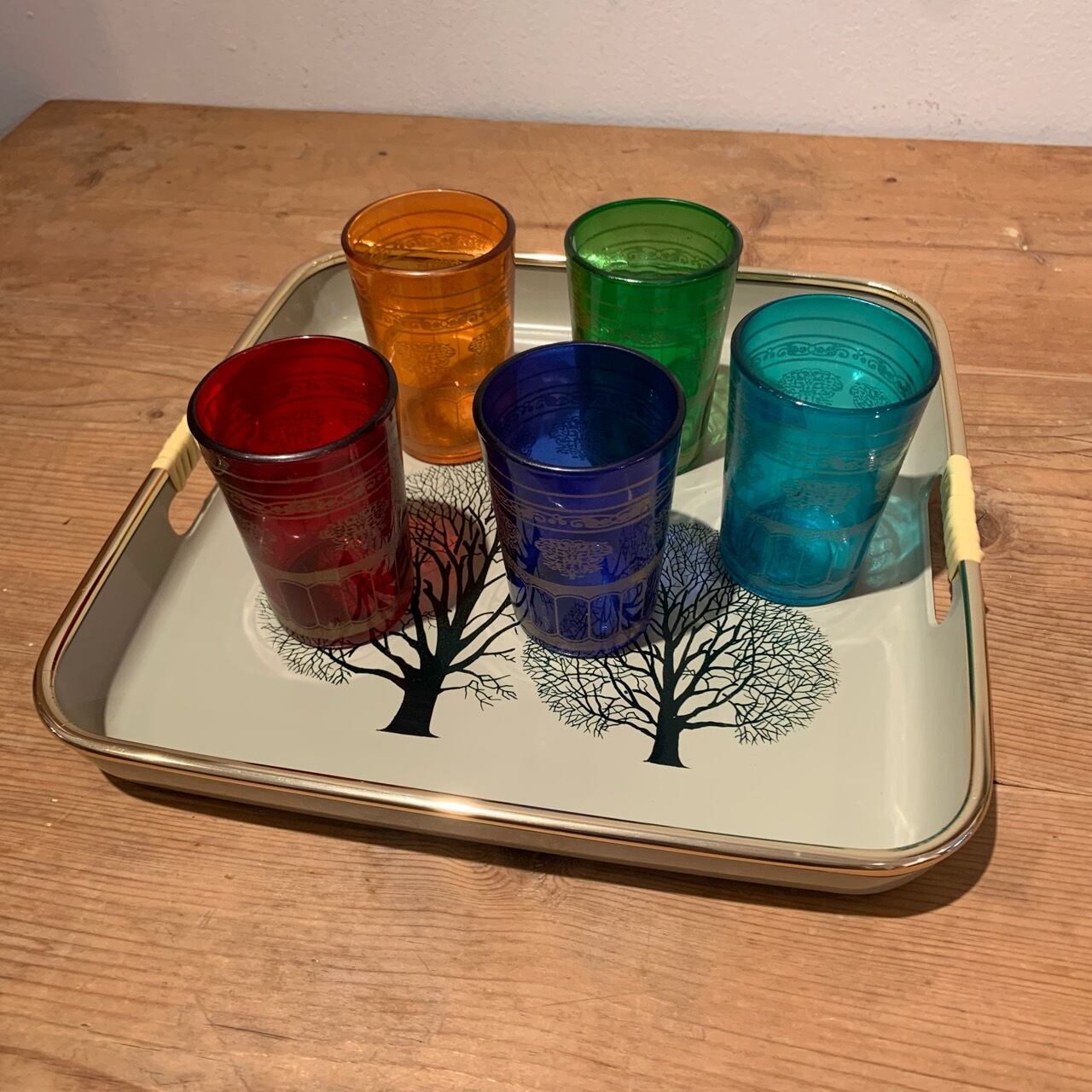 北欧風のトレー ビンテージ お盆 昭和レトロ 正方形(大)