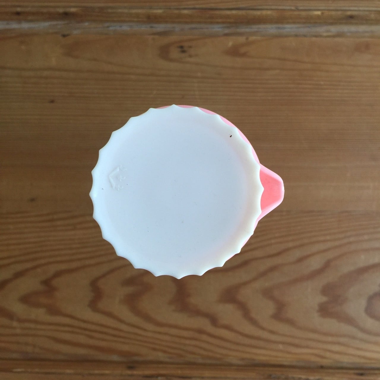 シンプルな格子柄とピンクと白の組み合わせの蓋が、可愛いレトロなポット
