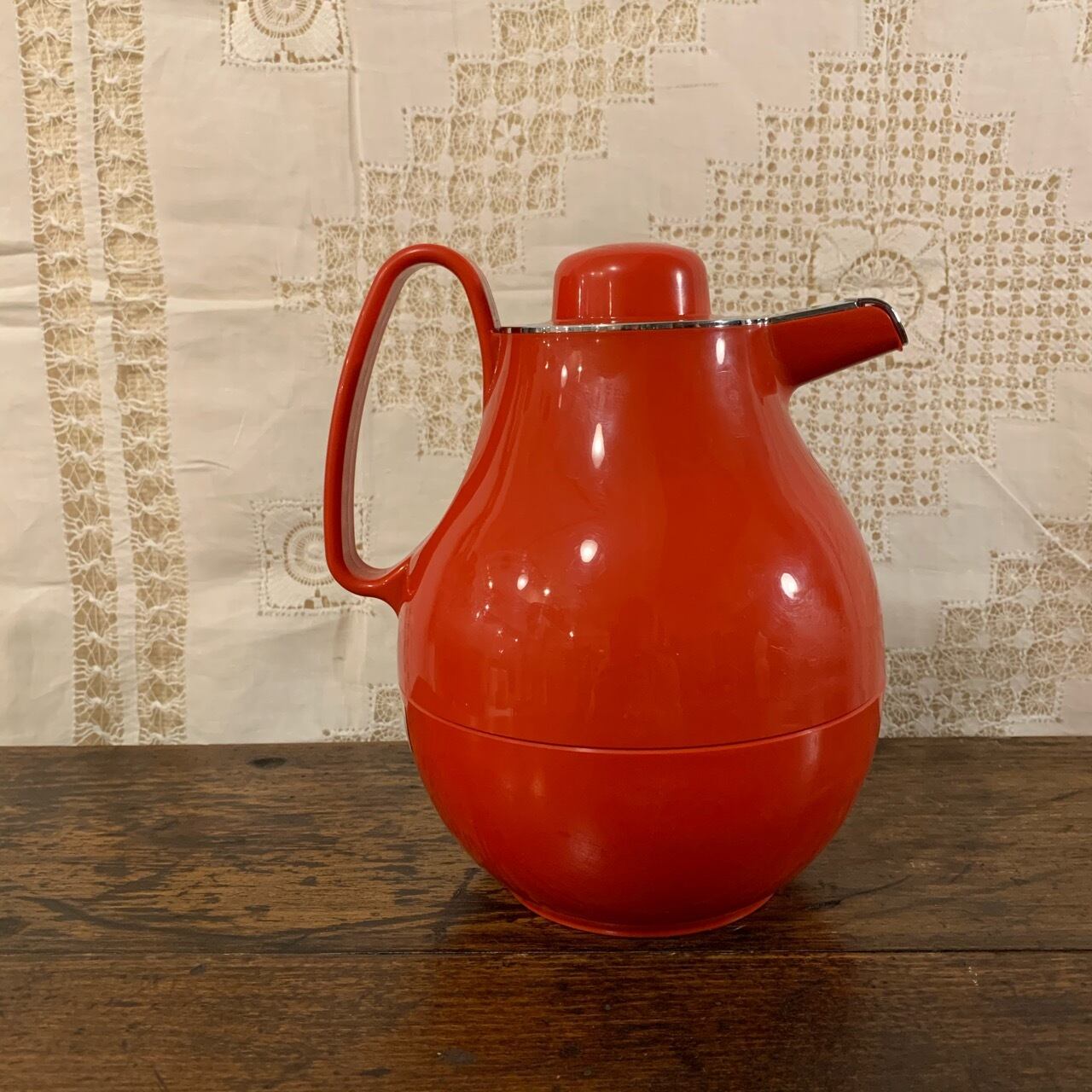 ポップなデザインとビビットカラーのレッドが可愛いビンテージポット
